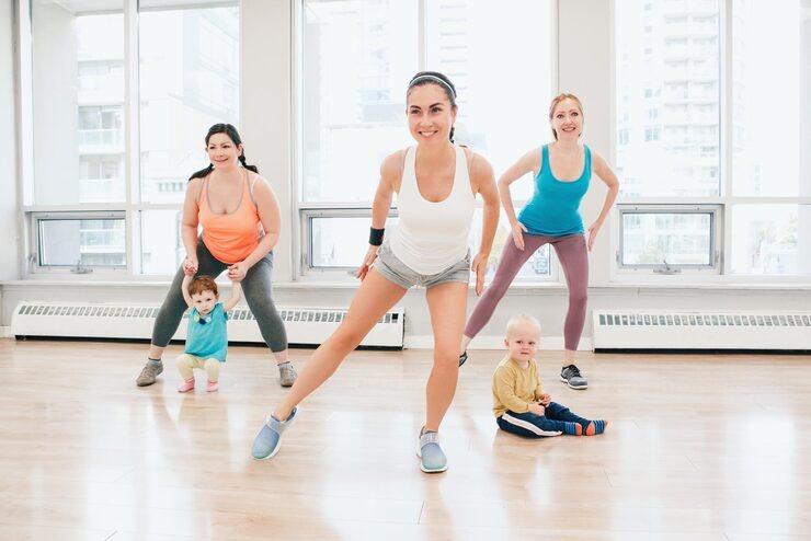 Gentle, safe exercises that help mothers regain strength while including their babies in every session.
